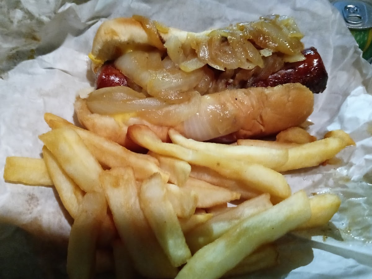This is the place to stop when you are craving a traditional Polish Sausage! The grilled onions are amazing and come with fries. Ironically Jim's Original is more well known for its sausage but the locals prefer Express Grill. What's really awesome is that Express grill is only 50 feet south of jim's so you can/should try both that's what l did. Express Grill sausages are a little bigger and meatier (less saltier too) and the fries are less seasoned. It's Great late night drunk food at a great price. Definitely worth a visit if you are in Chicago. stand up tables limited parking. 100% Recommend!
