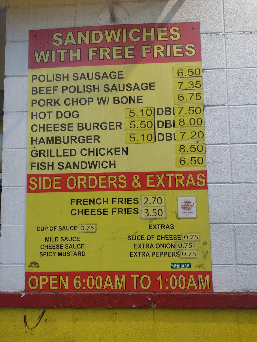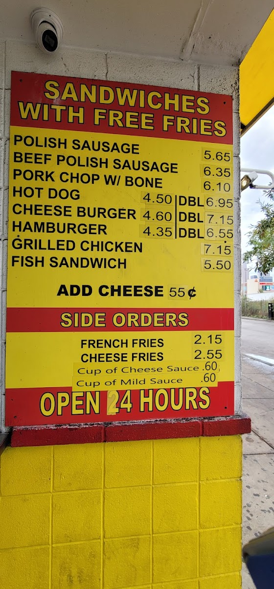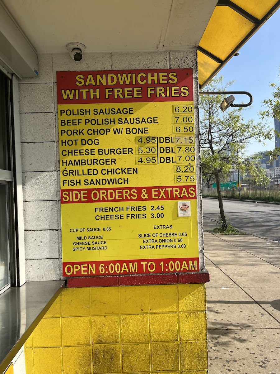 Guests often come by to enjoy popular dishes like the split and grilled Polish sausage with mustard and grilled onions, or the Maxwell Street pork chop sandwich—all served with crispy fries that add a familiar, comforting touch. Alongside these savory choices, homemade Italian ice and classic soda options provide simple, refreshing complements to the meal.